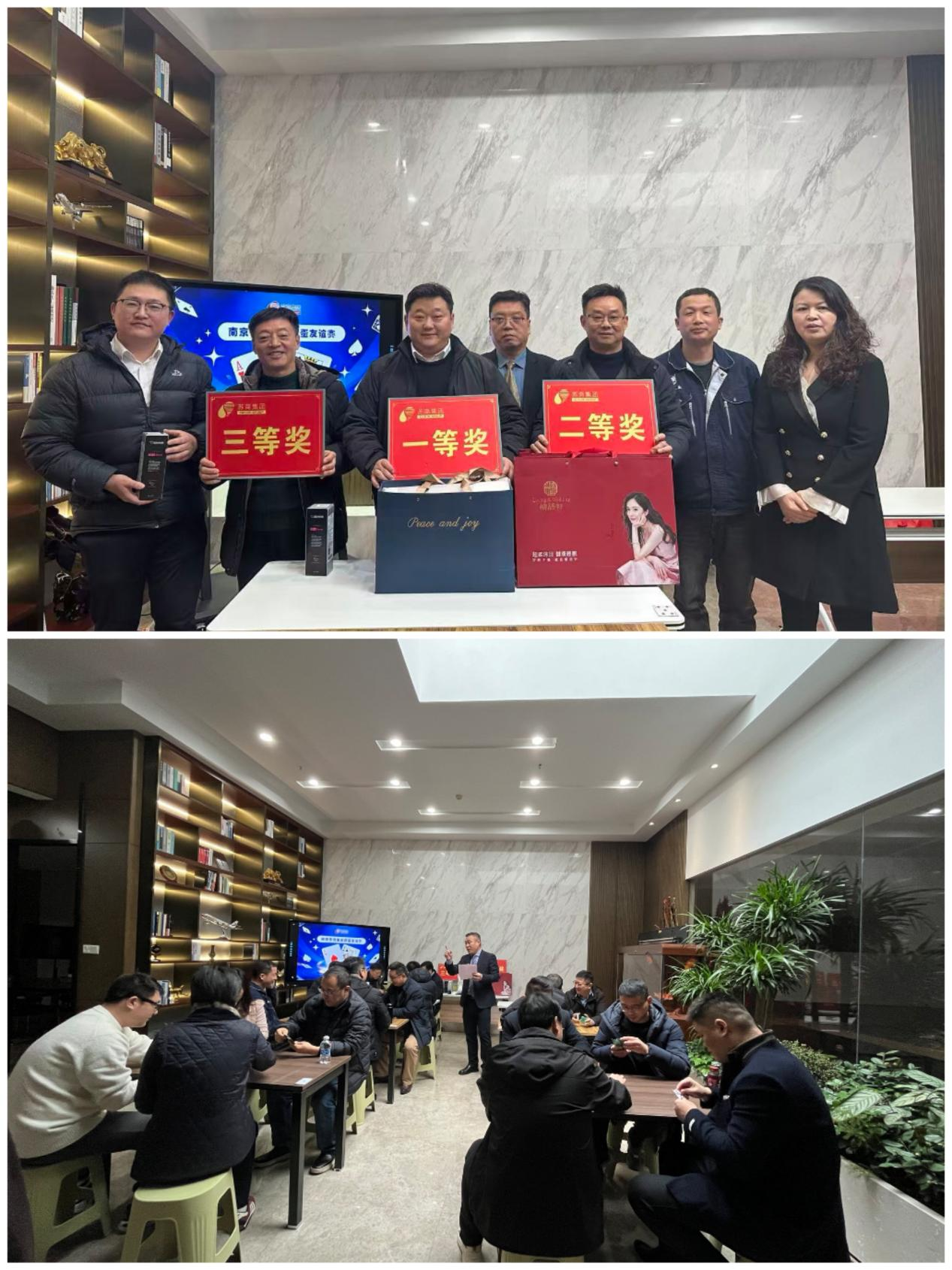 當(dāng)日中午,集團(tuán)本部洋溢著輕松愉快的氣氛。作為迎新系列活動(dòng)的“開場(chǎng)戲”,“摜蛋”友誼賽于12:30準(zhǔn)時(shí)開賽。來自集團(tuán)各事業(yè)部的員工閃亮登場(chǎng)、同臺(tái)競(jìng)技。牌桌上,選手們沉著思考、默契配合,上演了一場(chǎng)場(chǎng)精彩的智力對(duì)決;牌桌下,歡聲笑語不斷,平日里在不同崗位奮斗的同事們借此機(jī)會(huì)深入交流,增進(jìn)了彼此了解與情誼。比賽不僅展現(xiàn)了蘇商人嚴(yán)謹(jǐn)?shù)倪壿嬎季S與協(xié)作精神,更在溫馨快樂中強(qiáng)化了團(tuán)隊(duì)凝聚力,為后續(xù)活動(dòng)營造了熱烈而和諧的氛圍。